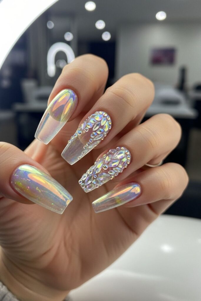 Fresh nail trends everyone’s loving holographic chrome, fruity summer vibes, and bold statement art. Perfect inspo for your next mani.